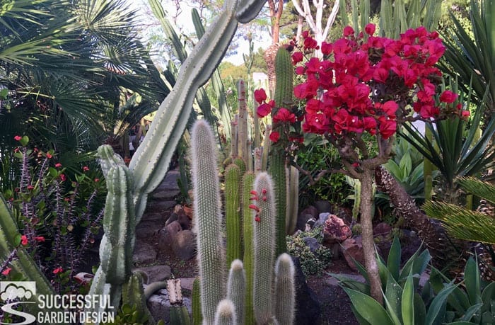 So regardless of the actual plant types, you are using, always pay attention to shape and form if you want success. There are plenty of plants other than cacti that have an ‘architectural’ quality. Make sure to add them throughout your planting scheme.