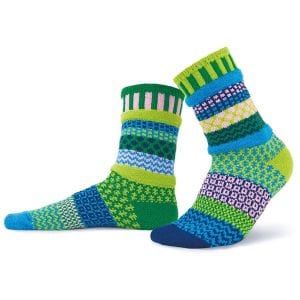 They come in a soothing mix of cool blues and soft greens, with a subtle hint of a pale pink to brighten up any day. Also available in raspberry with shades of cool blue and purple.