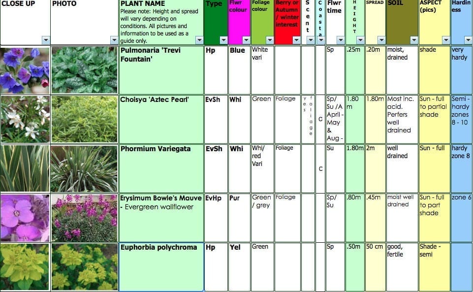 So following on from March’s subtle planting scheme that wouldn’t clash with all the spring flowering bulbs, this month’s garden plant selection has brighter colours but will still compliment all the bright bulb colours. This selection is part 1 of the scheme, part 2 will be in May and will carry on the intense purple and lime combination…
