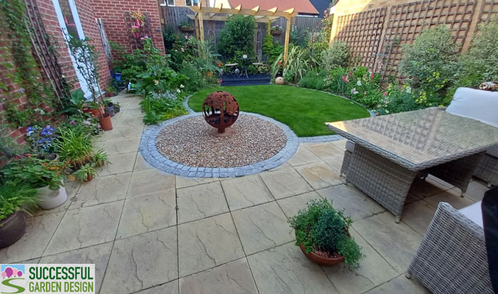 We downsized to this new house in June 2020. The 10m x 7m garden had been done to ‘look nice ‘ with the usual square lawn and surrounding shrubbery etc. There was even a swing seat on gravel at the end of the garden. The builders obviously took the easiest route and there was no specific ‘design’ about it.