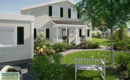 This is the garden design of Silas, a Successful Garden Design student building a Swedish house in a New England style.